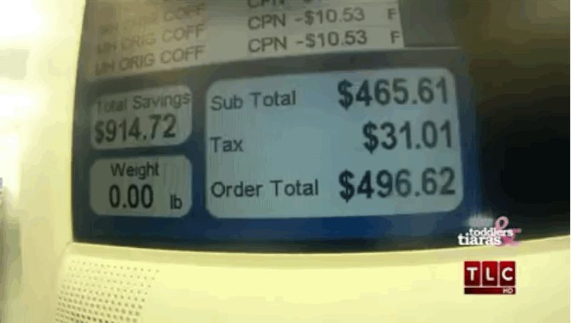 In order to get there, you need to buy four newspapers a week, too, because remember, you need to stockpile—buying anything less than four of anything at this juncture is a fool’s errand. And besides, the more you buy, the more you hear those “beautiful beeps” of coupons being scanned, putting “money back in your pocket.” Because paying full price is death. The real f-word in her family, she tells us, is “full price.” That’s two words.