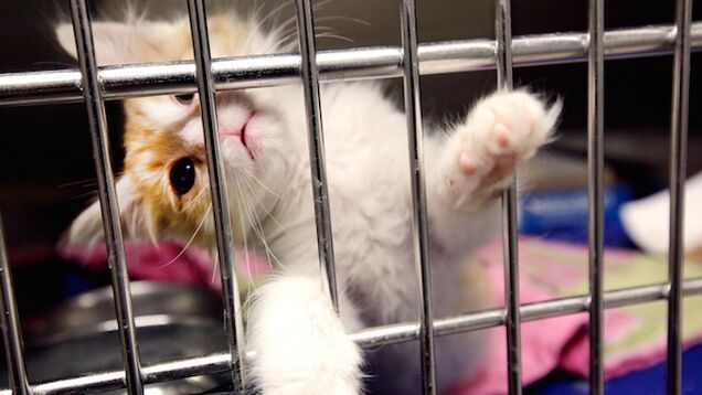 A kitten named Jacuzzi at a Los Angeles animal shelter, 2013. Photo via AP.