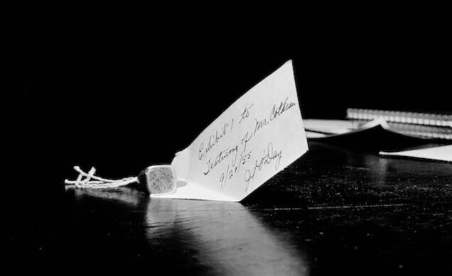 Image of Emmett Till’s ring, tagged as court evidence, via AP