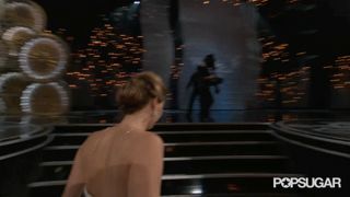 In the first story, Lawrence mistakes a woman for Elizabeth Taylor—who she knew was dead at the time she was meeting her, which is pretty endearing. In the second, she describes what it was like to approach Francis Ford Coppola only to find that her dress had come unzipped, and the famed director and every one of the people he was dining with had gotten a face full of her back and thong, which was just hanging out, shaking hands, kissing babies, and saying hello to its constituents.