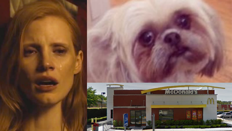 I fear Vallejo on account of the fact that I associate it with the Zodiac killer, but strongly urge those braver than I to travel to the ghostly California town and seek Livvy out. She is a small, Shih Tzu-seeming dog with sad eyes and what I presume to be a gentle disposition. Because she was stolen from one in an incident that Chastain unfortunately decided to avoid describing in any detail, we can also assume Livvy fears McDonald’s, as she very likely associates the golden arches with terror and abandonment. So be sure to check everywhere but area McDonald’s locations.