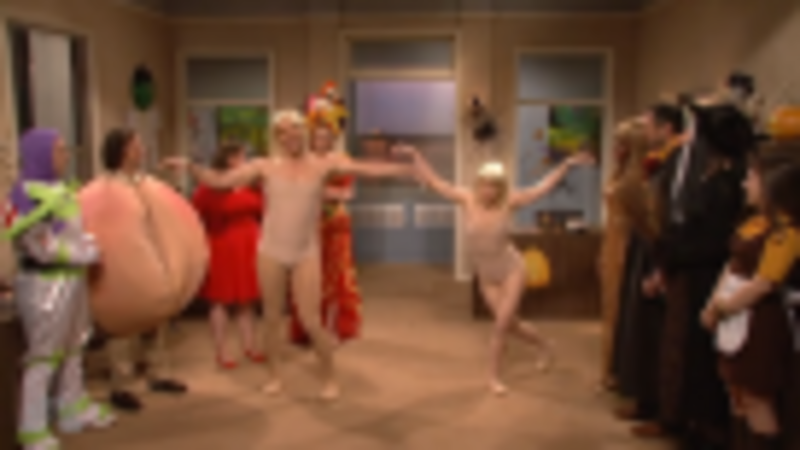 The most bonkers skit was probably "Halloween Party," where two employees (Carrey and McKinnon) accidentally show up in the same Halloween Costume—Maddie Ziegler in the nude onesie from Sia's "Chandelier" music video. Obviously they have to compete to see who really wore it better. And so (after some tired fat-shamey and "l.o.l. racism!" jokes) begins the sketch rife with every SNL gimmick including appearances from Lorne Michaels and the musical guest. I'm assuming someone pitched it as, "Hey, wouldn't it hilarious if we put Jim Carrey in that outfit from the Sia music video?" And enough people said yes.