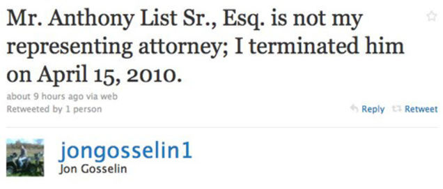 Now, I have no great love for Jon Gosselin: The Person—he's pretty clearly a passive-aggressive man-child douche who attempted to use his kids as collateral to turn attention into a career while he ran around Hollywood pretending to be a swingin' bachelor and penising the future fiances of best frenemy Michael Lohan. It's easy to see Kate as the arch-villain in the Jon & Kate narrative—a woman so entitled and annoying that Sarah Palin could not bear to eat a s'more in her presence—but Jon's dopey victimhood didn't do their family any favors either. What's most infuriating is how completely the spectacle of this slowly decaying loveless marriage has obscured the fact that SOMEBODY NEEDS TO JUST GET A FUCKING JOB ALREADY AND PAY ATTENTION TO THEIR CHILDREN INSTEAD OF SNORTING POWDERED DIAMONDS AND MAINLINING 5-HOUR ENERGY ON CHRISTIAN AUDIGIER'S LUXURY BATTLE-CRUISER.