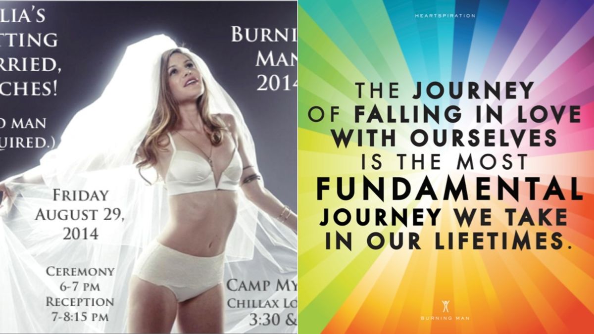 Julia Allison's marriage to herself has taken place, and with it comes details of the ceremony: Allison writes on Facebook that she "greatly appreciated the naked man who looked like Jesus dancing like a crazy person to 'Don't Stop Believing' played at the reception. It was an 'Only at Burning Man' moment." She also appears to have changed her name to Mrs. Rainbow Allison.