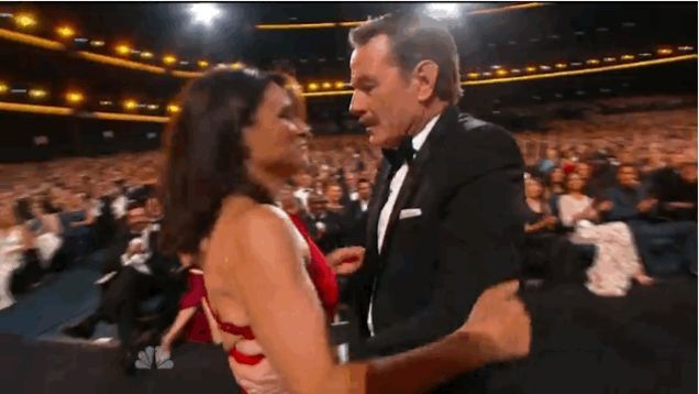When Julia got up to accept her Emmy for Outstanding Lead Actress in a Comedy Series, Bryan Cranston grabbed her and they engaged in a quite hot and very heavy make out session before they were eventually torn apart by Jimmy Fallon.