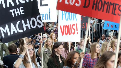 All this is fine; if Lagerfeld wanted to present a new/old take on the working woman, fine, great, excellent. But by the finale, it leaves a bad taste: all the models emerged carrying picket signs in an approximation of a feminist protest, with Lagerfeld in the lead (side-eyyyye).