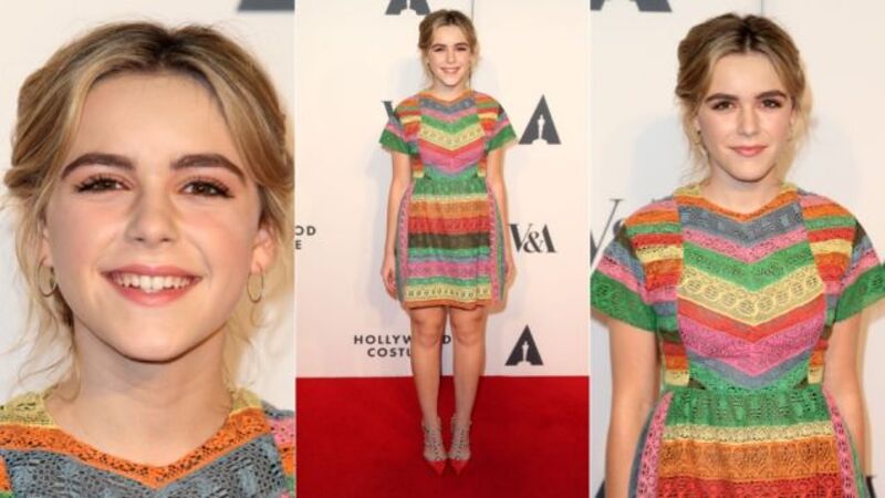 Mad Men actress Kiernan Shipka is a lovely rainbow as she attends The Academy of Motion Picture Arts and Sciences' Hollywood Costume Opening Party at the Wilshire May Company Building on October 1, 2014 in Los Angeles, California. More after the jump.