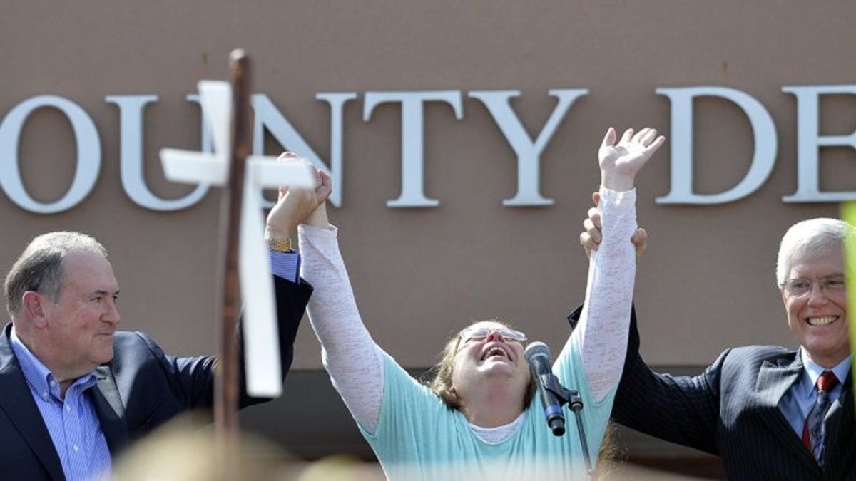 Regardless, for all of her bigotry, Davis has been rewarded with the company of God’s representative on earth and Mike Huckabee. What a world.