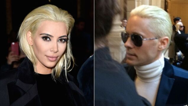 Kim Kardashian and Jared Leto debuted equally questionable hair decisions Thursday at Paris Fashion Week.