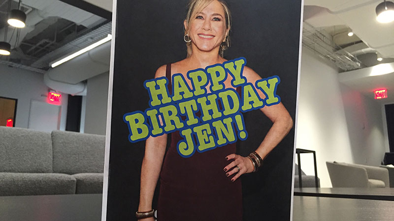 But even though Jennifer Aniston’s life is very good, we can make it even better by sending her a birthday card. So share some friendly words for her below, and I’ll add as many as I can fit into this custom birthday card, which I’ll put in the mail tomorrow morning.