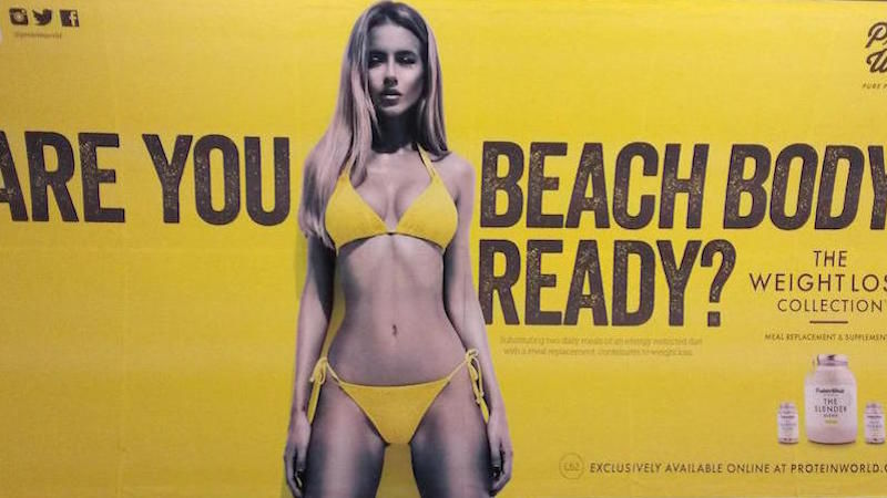 About a year ago, an advertisement for Protein World, featuring a model wearing a yellow bikini and the text “Are you beach body ready?” on London’s underground provoked a backlash on social media. In response to the hard-to-miss ad, some 70,000 people signed a Change.org petition asking that the Transport for London, the agency that oversees advertisements on public transportation, reconsider its policies. There was also a protest in Hyde Park. Protein World did itself no favors during the debate, The Guardian reported that the brand’s Twitter took a “robust approach to its critics,” tweeting about motivation under the hashtag #getagrip: