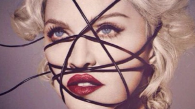 The cover of Rebel Heart features a close-up of Madonna's face wrapped in a BDSM-alluding tangle of black cord. Since it dropped, she's been regramming fan art of various other icons photoshopped into that image, including Marilyn Monroe, Frida Kahlo, and (heh) Lady Gaga.