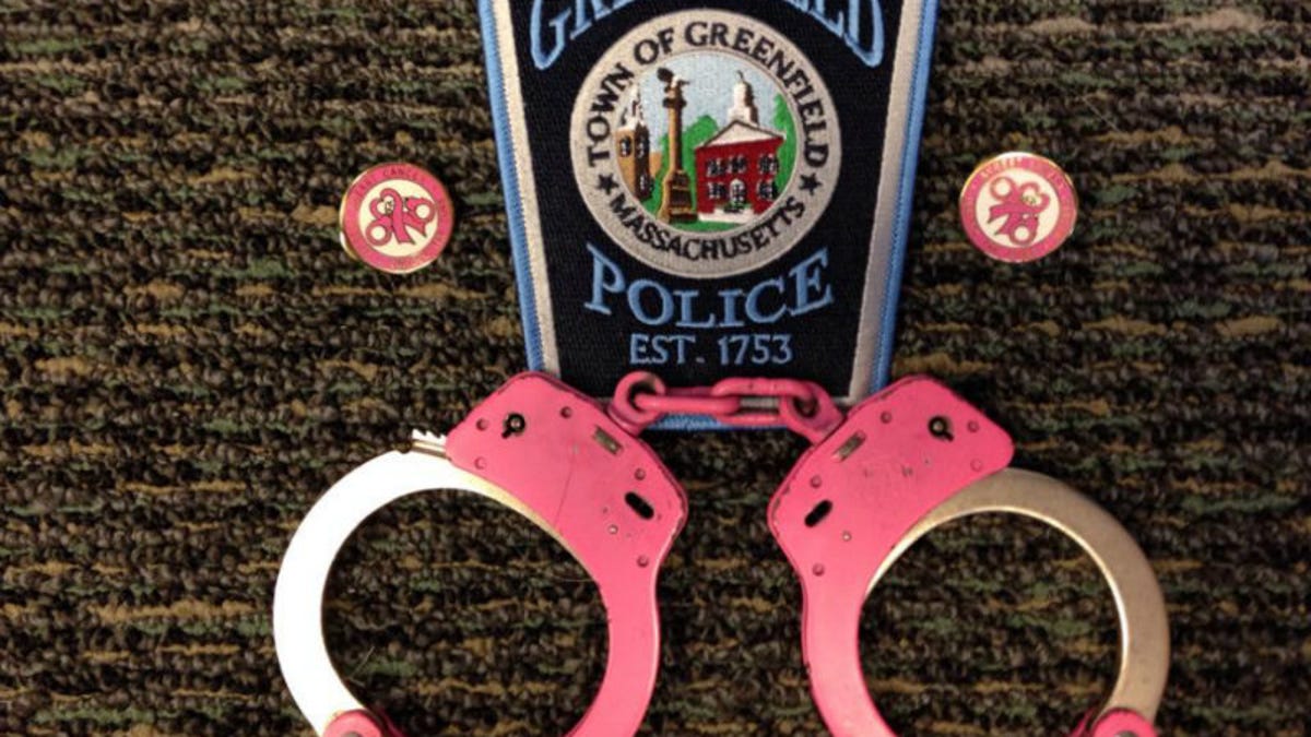 The pinkwashing Olympics have their new champion: the police department of Greenfield, Massachusetts announced on Facebook that for the month of October, they’ll be using pink handcuffs. Officers will also sport pins reading “Arrest Breast Cancer.” Because there’s no problem you can’t solve that way.