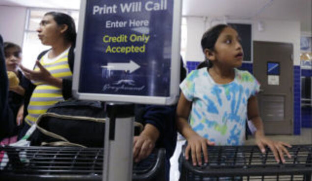 Families released from detention wait at a bus station in San Antonio, July 7, 2015. Photo via AP Images