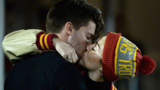 "Hi Dad, here's my new girlfriend. Yes, she's the one wearing glitter stickers." Popsugar has a picture of Miley with the back of Arnold's head. He seems engrossed in a message or perhaps a game of some sort on his phone. I couldn't tell. Either way, it seems like the exact kind of awkward "family bonding" we all have to endure with our new boyfriend/girlfriend's families. I just hope she fared better on the "how much of that stuffing are you going to eat anyway?" portion of the evening than I did last year.