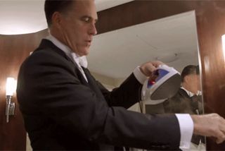 However, it looks like we'll also get a healthy serving of dorky Mitt, doing things like trying to iron a tux he's already wearing while deadpanning "Ouch." No, really! Here is a GIF, courtesy NY Mag:
