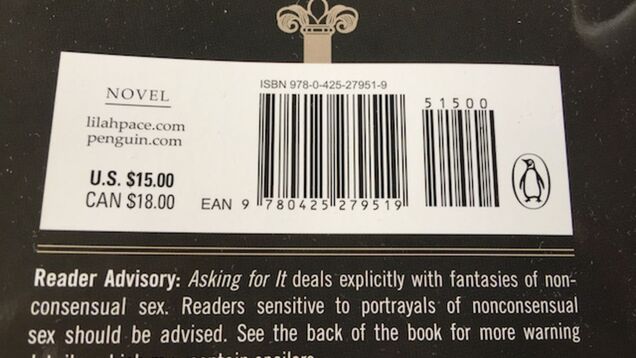 Now, a major publisher, Penguin, is set to release a full length romance novel based entirely around rape play, called Asking for It, by Lilah Pace. Unlike in Willing Victim, here, the rape fantasy is conceived by the heroine. Graduate student Vivienne Charles wants a guy who will take her completely by force; she finds him in a geology professor named Jonah, who also fantasizes about raping women. Though Vivienne is ashamed of her fantasy, Jonah—who is not a freak per se, but does have a “complicated” past—encourages her to explore it. The two decide they will keep their distance from each other, agree to a set of hard limits, and when Jonah wants to, he will take Vivienne by surprise and by force.
