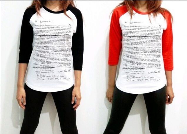 Kurt Cobain's suicide note has now been replicated in its entirety into a baseball shirt that can be purchased on eBay. A similar tank top depicting a replication of the note was also available until recently on Etsy, until a Reddit discussion drew attention to it, prompting the site to take it down. The image can still be seen viaStyleite's post.
