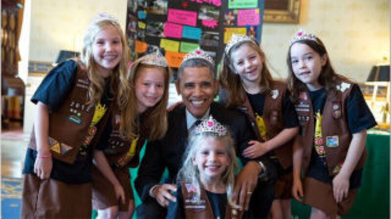 So much for "not putting things on your head if you're president." Obama broke his own rules (but not the rules of fashion, which demand a tiara on all occasions) by putting on a Tiara to pose with the girl scouts. I don't know, I'd put on a tiara too — if they weren't already required here — for a couple of Samoas.