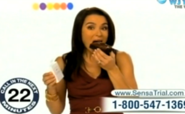 The ads that aired were relatively low-key – and mildly hilarious now. They describe most diets as "frienemies", arguing that Sensa is your friend. "Does your best friend tell you how to live, what to eat?" asks Spencer. "'Course not. Good friends don't judge, they encourage, they offer support. And I'm happy to say I found a good friend in Sensa."