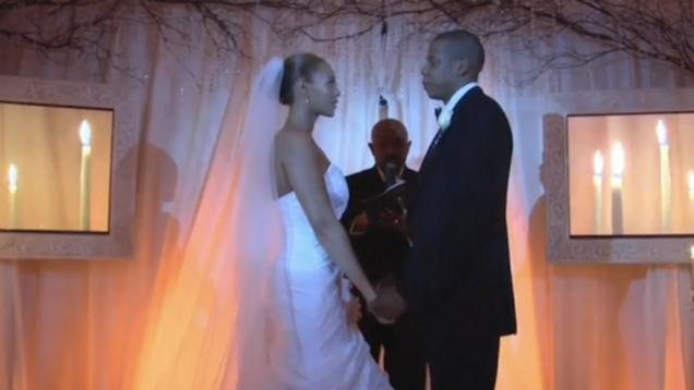 But the tour finale included footage from their wedding (as well as the couple getting "IV" tattooed on their ring fingers), so joke's on y'all, internet forums. The ceremony was, apparently, idyllic: there were icicles cascading from the ceiling and candles so bright and large they looked fake, and Bey's dress glowed like she was the star of Hunger Games, which is all this crazy world of paparazzi and false information and tabloids are, anyway. That image aired during "Young Forever," definitely top three corniest songs on the setlist but at that point, the narrative had trumped all else.