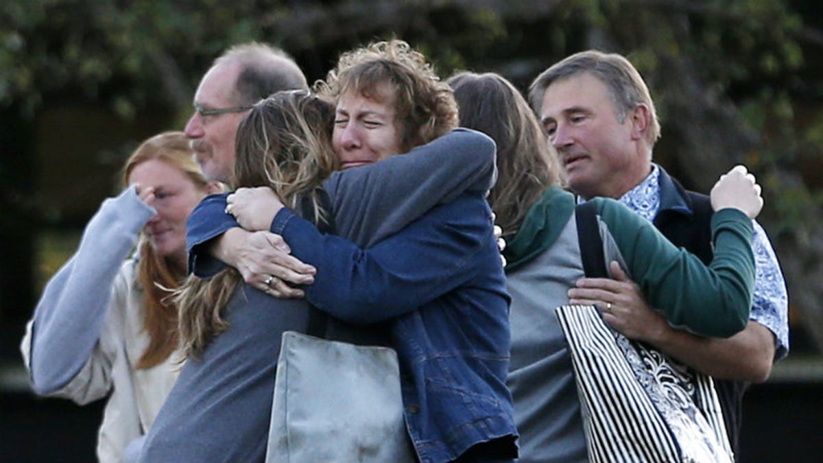 Faculty members at Umpque Community College cry and embrace after being allowed to return to campus, Monday, October 5, 2015. Photo via AP Images