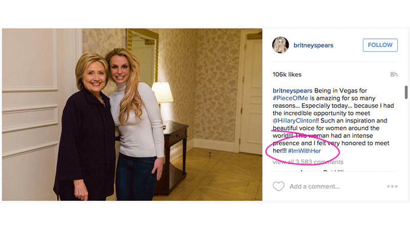 A short time after posting the picture, Spears removed her endorsement and deleted the hashtag ‘ImWithHer’