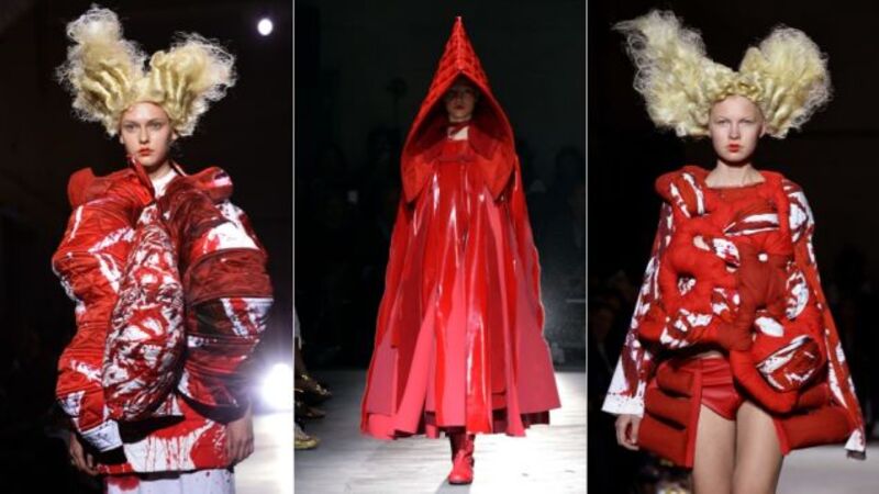 If Comme des Garçons' Rei Kawakubo has her way, next spring we will all be praying at the altar of our own ovaries, in her brilliant crimson odes to blood and guts and "roses, but not a pretty rose." It is brilliant, it is sculptural, it is clothing designed to never let the wearer forget that we're literally all the same inside, a tangle of entrails and gore. Also, tampons. It's somewhere between '70s body politic art, '90s riot grrrl, the tampon earrings from Meadham Kirchoff, and feminist fairy tales.
