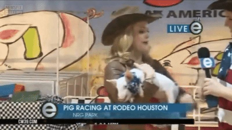 Prior to having the pig handed to her during a live segment at a pig racing event (...) in Houston, Maggie Flecknoe had no idea how upset this pig’s stomach had been all day.
