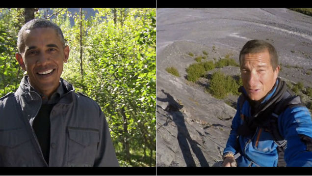 “As president, I’m in what’s called a bubble. The Secret Service keep me out of danger, which I very much appreciate, but it can be a little confining,” said Obama. “In fact, every once in awhile when I go off track and do something unexpected, the phrase we use is ‘The bear is loose’ and somebody tries to grab a tranquilizer gun and make sure they get me back in the cage. To be with Bear in the woods, it doesn’t get any better than that.”
