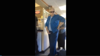Shame on those people. But Carlos Vasquez holds his own as Trumpy Trashy gets increasingly incoherent, invoking the Russians, “Freedom of Speech,” her belief that the “Nazis” and the “Castros” are “here” (WHOO-EE), and her travel experience in Spain, where she assumes Carlos Vasquez has never been. (One wonders if Trashcan Backwoods would have yelled the same things at a white person speaking French, or—even despite her Nazi fears—German. Does she know what Nazis are?)