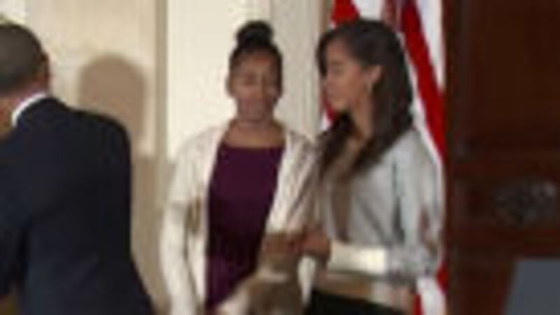There's not much to say about this except that the facial expressions are golden. To most Americans, he's the president of The United Stated. To Sasha and Malia he's just some embarrassing old dude talking about turkeys and oh my god, will you stop with the corny jokes. Oh my god. They are literally going to DIE if their friends see this.