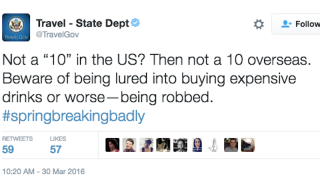The Twitter account for the U.S. Department of State Bureau of Consular Affairs is my mother.
