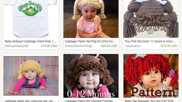 This became apparent during a recent deep-dive of the “kids” section on Etsy, when crocheted Cabbage Patch Kid wigs started popping up. Turns out it’s not one lone enthusiast knitter building a business on her deep, abiding love of toys from the 1980s. No, this is a thriving corner of the Etsy economy.