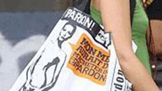 - First Lady Carla Bruni Sarkozy is suing the bag company Pardon for using her nude image (circa '93) on a tote. The text translates to, “My guy should have bought Pardon!" [Telegraph]