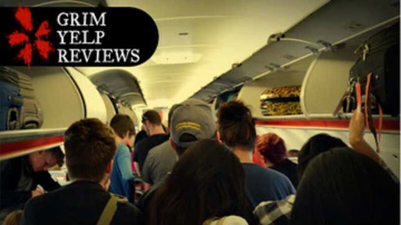 Welcome to Grim Yelp Reviews, a regular feature where we share people’s worst experiences at the worst places. This week: Up, up, and awa- oh dear Lord, that better not be urine in my seat. Why would you just pee right there? Who does that?