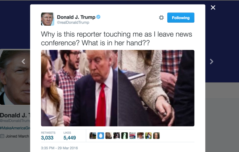 Earlier today, Donald Trump tweeted out several photos of former Breitbart reporter Michelle Fields in the seconds before she was manhandled by his campaign manager, Corey Lewandowski. In the tweet, Trump appeared dismayed and confused at the mystery object in Fields’ hand. There’s just one problem with Trump’s…