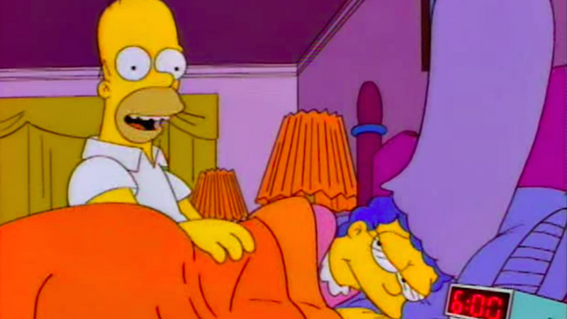 Last night's episode of The Simpsons was a flashback look at Marge and Homer's life in the early '90s before they were married, when Homer was in a grunge band called Sadgasm and Marge had a Melrose Place-y hairdo while attending college. The nearly didn't make it, since Marge briefly fell in love with her douche bag…
