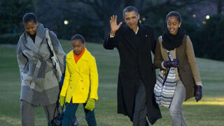 [Washington, D.C., January 17: As the Obama family arrives at a community service event honoring Martin Luther King Jr. Day, Michelle Obama is surprised by everyone singing Stevie Wonder's version of "Happy Birthday." She turns 47 today. Image via AP.]