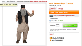 It may officially be November, but that doesn't mean we're safe from the tragedy that is terrible Halloween costumes. This time, it's this crazy racist "Pashtun Papa Islamic Costume." It's a perfect ending to a banner year for straight up asinine-disguised-as-topical costumes.