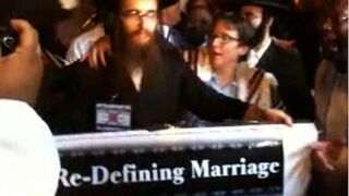 Ultra-Orthodox Man Spits On Lesbian Rabbi At Gay Marriage ProtestIrin Carmon6/21/11 4:10pm206EditInvite manuallyPromoteDismissUndismissHideGo to permalinkYesterday, outside the New York state senate (which has yet to schedule a vote on a pending gay marriage bill), rabbi and gay rights activist Sharon Kleinbaum jostled with anti-gay marriage Hasids. It got pretty ugly.