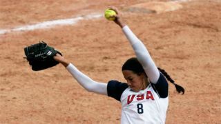 [Caracas, June 30. Japan's Mika Someya pitches against Venezuela during the Women's Softball World Championship game]