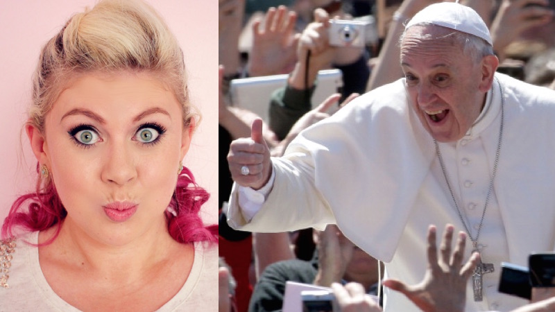 On Sunday, Mr. Pope tried to plant the seeds of faith into the hearts and minds of the world’s youth via vloggers. The Guardian reports he met with a dozen handpicked YouTube tastemakers at the Vatican, including Hayla Ghazal and Dulce Candy: