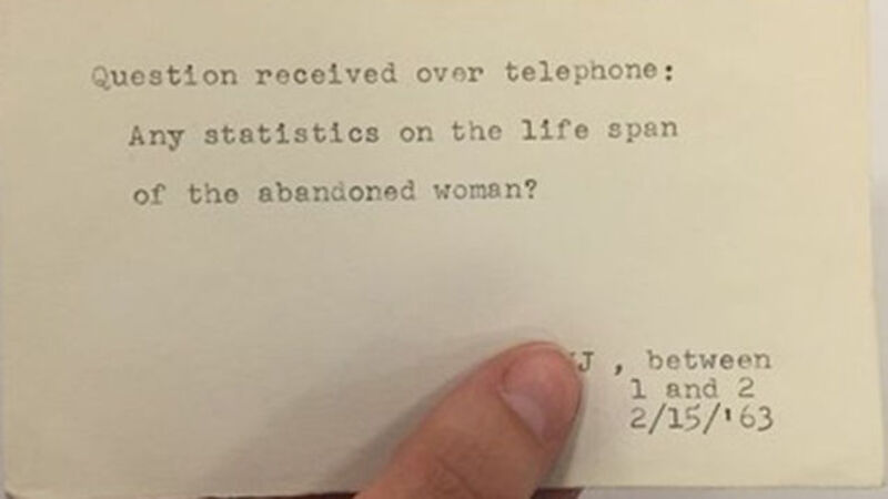 "Do mice throw up?" and "Any statistics on the lifespan of the abandoned woman?" are some of the less strange questions that librarians at the New York Public Library have been writing down for decades. If you're wondering if people asked about sex, the answer is "yes, absolutely."