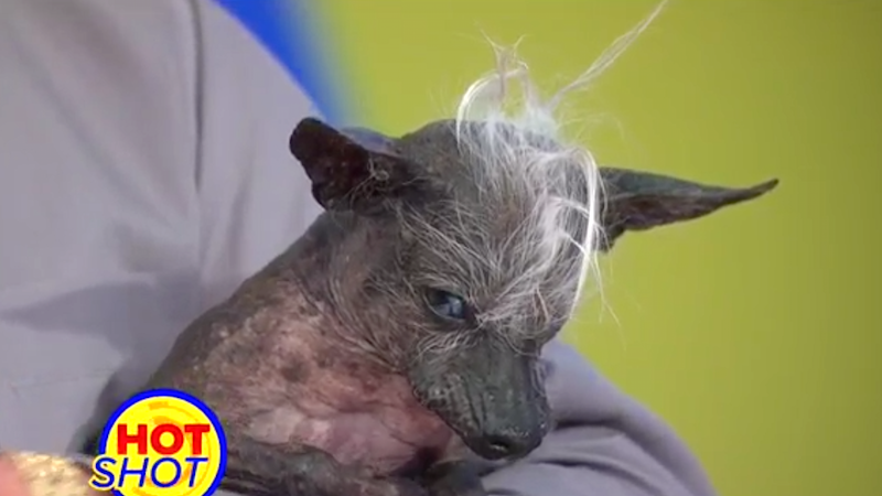 Say hello to your 2016 champion of the World’s Ugliest Dog contest, SweePee Rambo. SweePee Rambo is a 17-year-old crested chihuahua, who wears diapers and has an oozing sore. She seems pretty over it all.