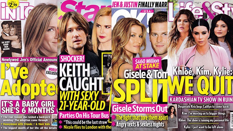 This week: Jennifer Aniston adopted a baby girl, Keith Urban adopted a mistress, Gisele and Tom are separating, and KUWTK is on its last well-contoured leg.