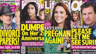 Life & Style has “exclusively learned that just 11 months after welcoming her baby girl, [Duchess Kate] is expecting her third child.” The magazine goes on to say that Kate has only told “her immediate family,” who then decided, “You know who needs this information? Life & Style, exclusively.” Kate and William had apparently wanted to wait before having a third, but honestly what else do they have to do besides waving, feeding the children, and having boring sex?