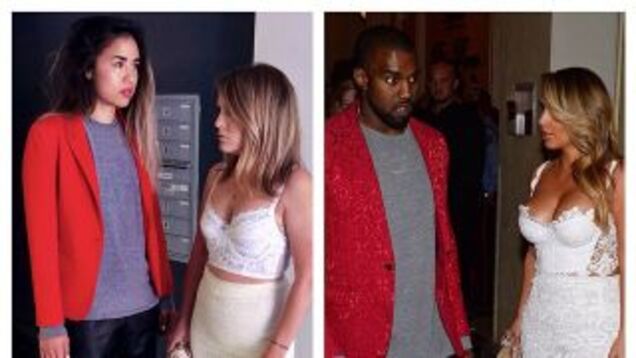 Kanye West and Kim Kardashian are so anxious to please us and themselves and the cameras and the world that they put a lot of thought into their outfits. Doing the Lord's work, Katie Burroughs and Kathleen Lee had the bright idea to recreate some of those famous Koordinated Kimye photos for their Tumblr and Instagram page, What Would Yeezus Wear?