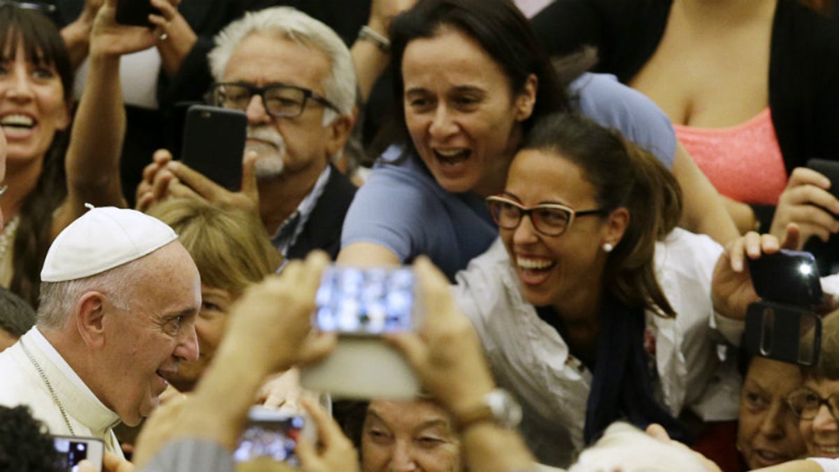 Pope Francis greets the faithful at Paul VI Hall in the Vatican, September 12, 2015. Photo via AP Images