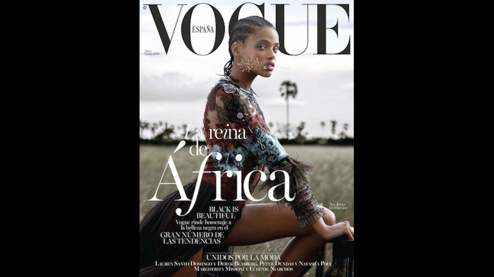 In terms of reflecting the real world, international versions of Vogue continue to be way better at diversity than American Vogue. Here’s model Aya Jones wearing cornrows on the March cover of Vogue Espana.